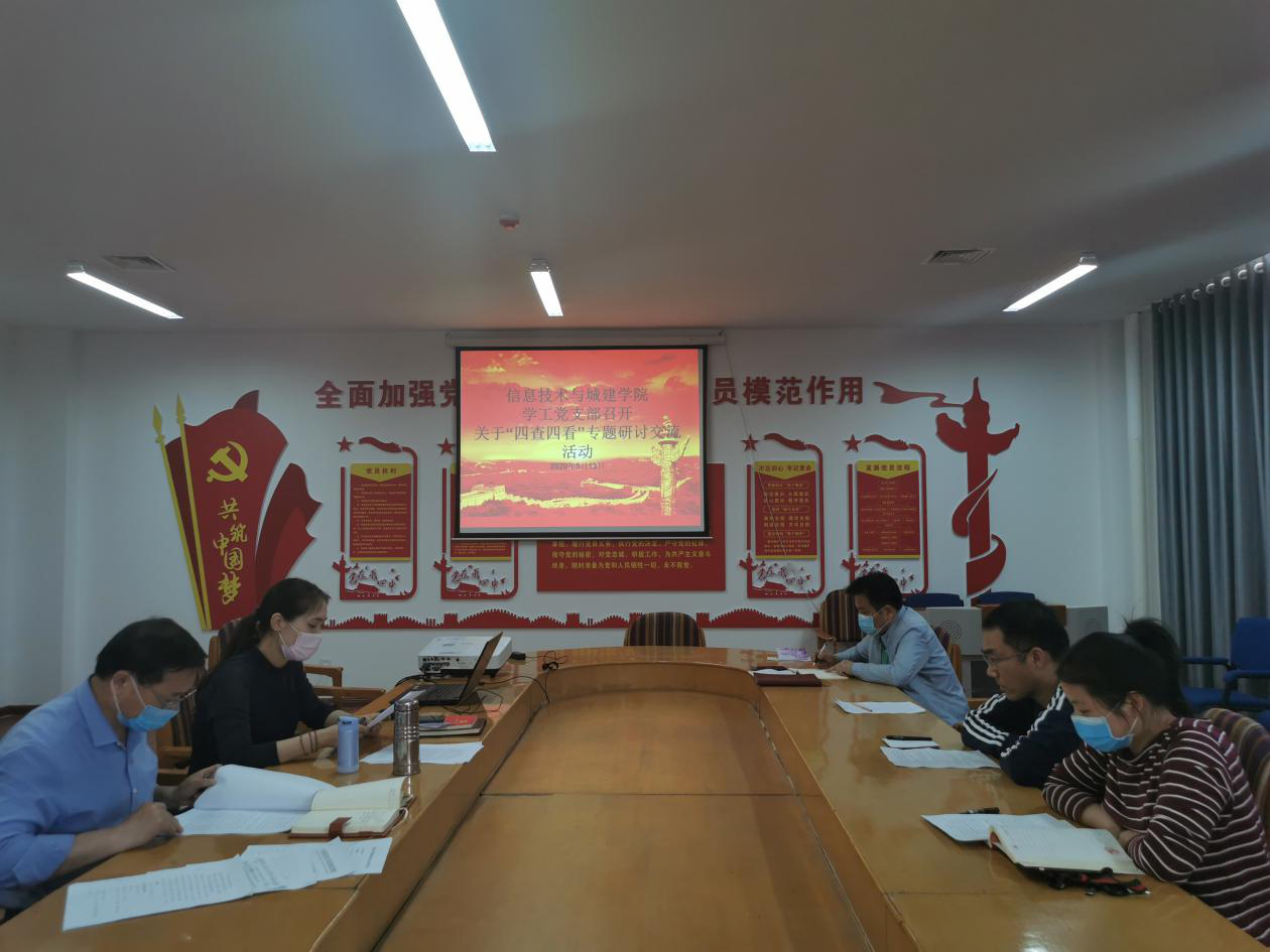 为进一步深入开展“强使命、找差距、明举措、勇担当”集中学习研讨活动,对照标准查找差距,解放思想争先创优,5月12日下午,信息技术与城建学院学工党支部召开“四查四看”专题研讨交流会。会议由信息技术与城建学院学工党支部书记付艺琳主持,支部全体党员参加。信息技术与城建学院党总支副书记参加会议并作指导。