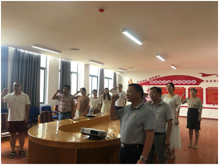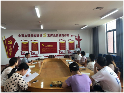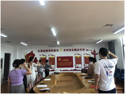 首先,在党总支副书记付新典同志领誓下,全体党员面对党旗重温了入党誓词。通过重温入党誓词,让党员回顾入党宣誓时的庄严承诺和坚定决心,让党员在党旗下接受心灵的净化和洗礼,牢记共产党员的政治责任和历史使命,严格遵守党的纪律和规矩,立足岗位发挥党员模范带头作用,以更加饱满的热情投身工作,努力推动学院各项工作。