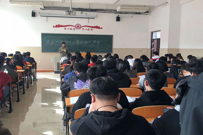 本次团课是由20级各班团支书在各班主讲。课上,各班团支书向团员强调了共青团的使命及性质,要求团员青年们牢记新时代青年的使命,坚定马克思主义信仰,同时要加强学习,锻造本领,做到不忘初心跟党走担当。课后,各班共青团员重温入团誓词、共唱团歌。