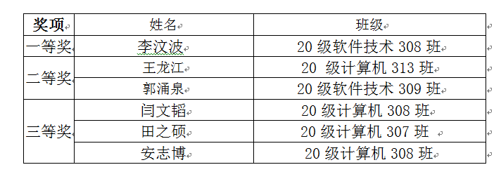 本次大赛经过报名和初赛后,共有18个人进入决赛,在最后决赛3小时中评委们从计算机组装和操作系统安装两个方面对各组进行了打分评判,最终评定奖项如下: