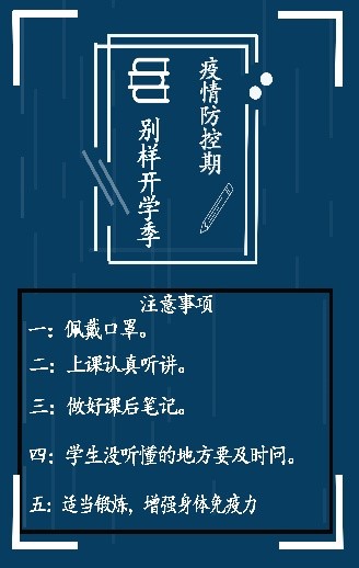 学院有针对性地围绕在校期间疫情防控的各类要求,鼓励师生原创作品进行自我教育,通过网络平台强化融合传播和交流互动。通过拍摄与制作关于抗击疫情正能量视频和海报等形式,抒发抗击疫情期间难以忘怀的坚守、携手并进的奋战、守望相助的关爱和万众一心的感动。