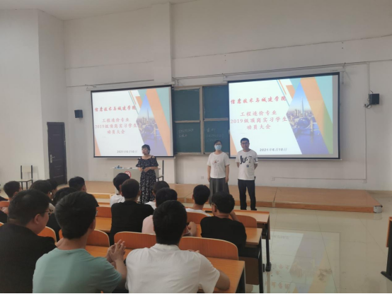 会上,徐阳洋老师就工程造价专业在顶岗实习方案、实习指导老师分组情况及实习过程中注意事项做了详细讲解,并向全体同学解读了“2022届工程造价专业毕业设计方案”。