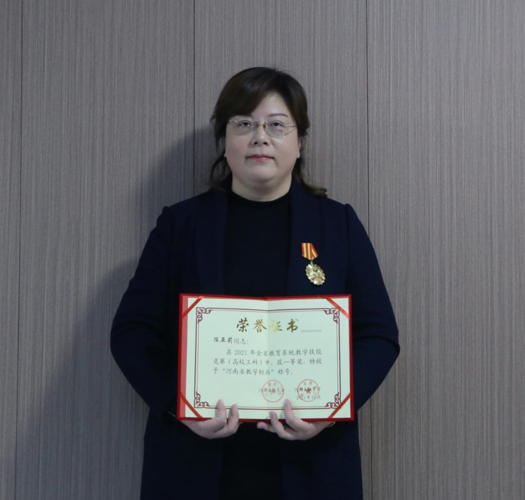日前,从洛阳市总工会传来捷报,由校工会、教务处报送洛阳市总工会参加河南省总工会、河南省教育厅主办的2021年河南省教学技能竞赛中,我校信息技术与城建学院陈亚莉老师斩获2021年全省教育系统教学技能竞赛(高校工科)一等奖,并被授予了“河南省教学标兵”的荣誉称号。