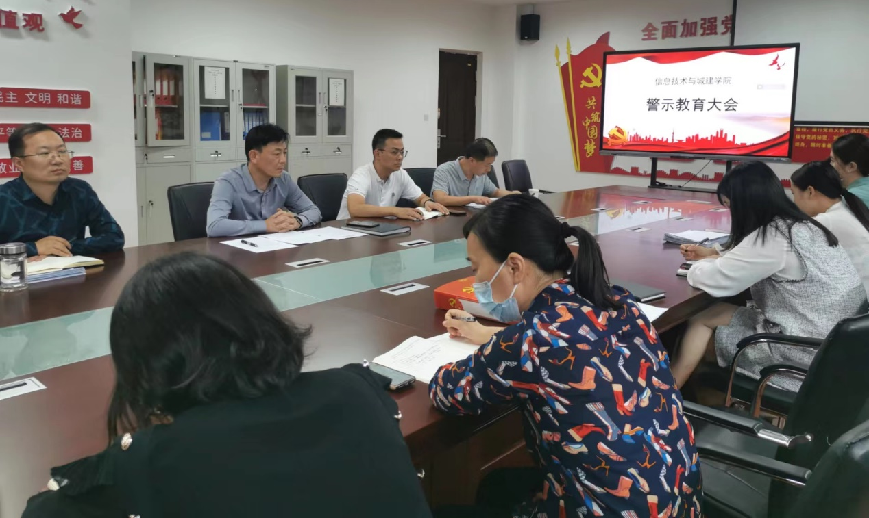 为充分发挥警示教育震慑、引导作用,推动监督预防“治未病”工作走深走实,9月22日下午,信息技术与城建学院党总支在1号楼210党建活动室召开了第三季度警示教育大会。校纪委李向明科长出席会议,学院全体教职工参加会议。会议由党总支书记夏文新主持。