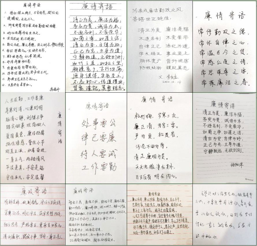 随后,教职员工纷纷展示了家庭成员手写的廉情寄语,在句句情真意切的寄语中,感受到了家人的期待与嘱托,营造了以清为美、以廉为荣、向上向善的良好氛围。