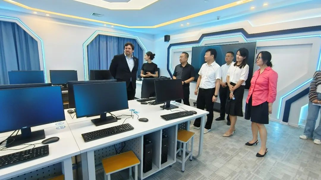 9月14日下午,维也纳技术高等专业学院副校长Gerd Christian Krizek带队到信息工程学院考察交流,代表团先后参观了大数据实训室、云计算实训室、网络技能提升实践中心、信创实训中心和VR虚拟现实技术实训室等专业实训室,近距离感受了学院的教学氛围。信息工程学院院长夏文新、党总支书记马选宝和副院长李世正陪同参观。