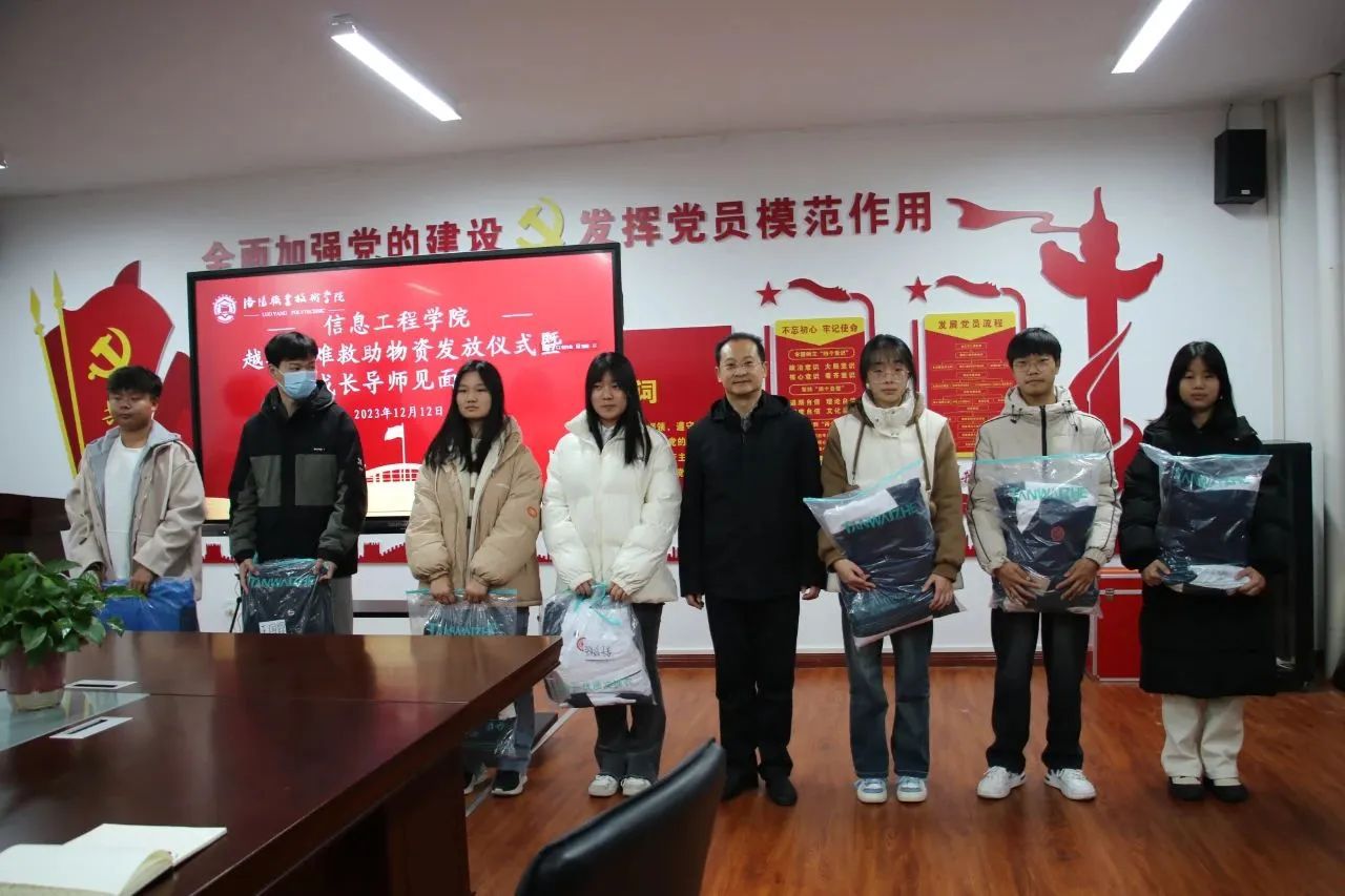 寒冬虽冷,温情暖人。为进一步为学生办实事、解难题,帮助家庭经济困难学生安心温暖过冬,提升同学们在校幸福感与归属感,助力学生成长成才,信息工程学院于12月12日在3-210会议室开展了越冬困难救助物品发放活动。洛阳职业技术学院副校长李保安、信息工程学院院长夏文新、党总支书记马选宝、党总支副书记马侨丹、副院长李世正、辅导员以及受助学生参加了本次活动。