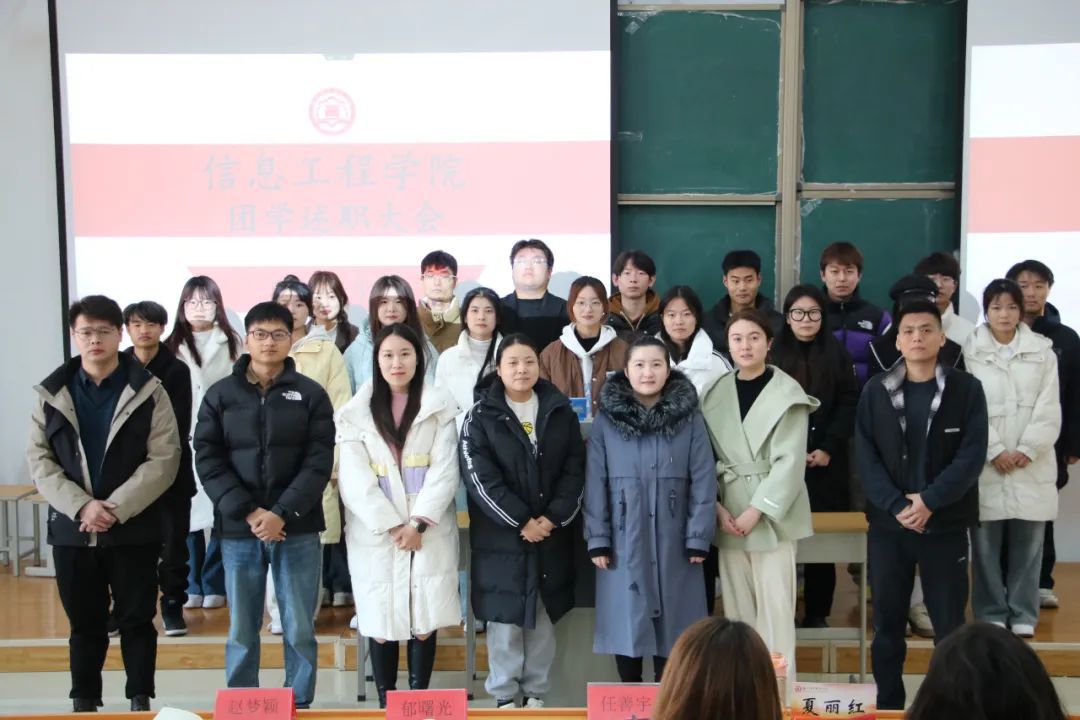 为加强对学生组织的工作指导,提升团学干部的工作能力,更好地总结本学期团学组织工作情况,进一步做好下学期工作规划,1月8日上午,信息工程学院在3-407教室举办了2023—2024学年第一学期团学组织述职大会。信息工程学院党总支副书记马侨丹、学工办主任夏丽红、团总支书记万维思、全体专职辅导员以及团学干部参加了本次会议。