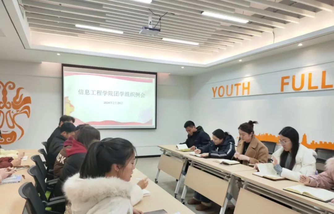 为了更好的推进团总支和学生会开展新学期工作,提升团队凝聚力和战斗力。信息工程学院于2月29日下午在青年之家召开了2023-2024学年春季学期团总支和学生会部长例会。信息工程学院团总支书记万维思、学工办主任夏丽红、团学组织指导老师以及团学组织各部门部长参加此次会议,会议由团总支学生副书记李非凡主持。