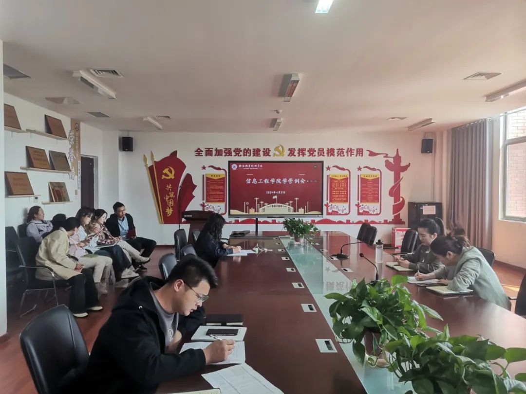 为做好学生管理工作,确保各项工作任务平稳有序开展,信息工程学院于4月8日召开了学生工作例会,信息工程学院党总支副书记马侨丹、团总支书记万维思以及全体专兼职辅导员、班主任参加了此次会议。
