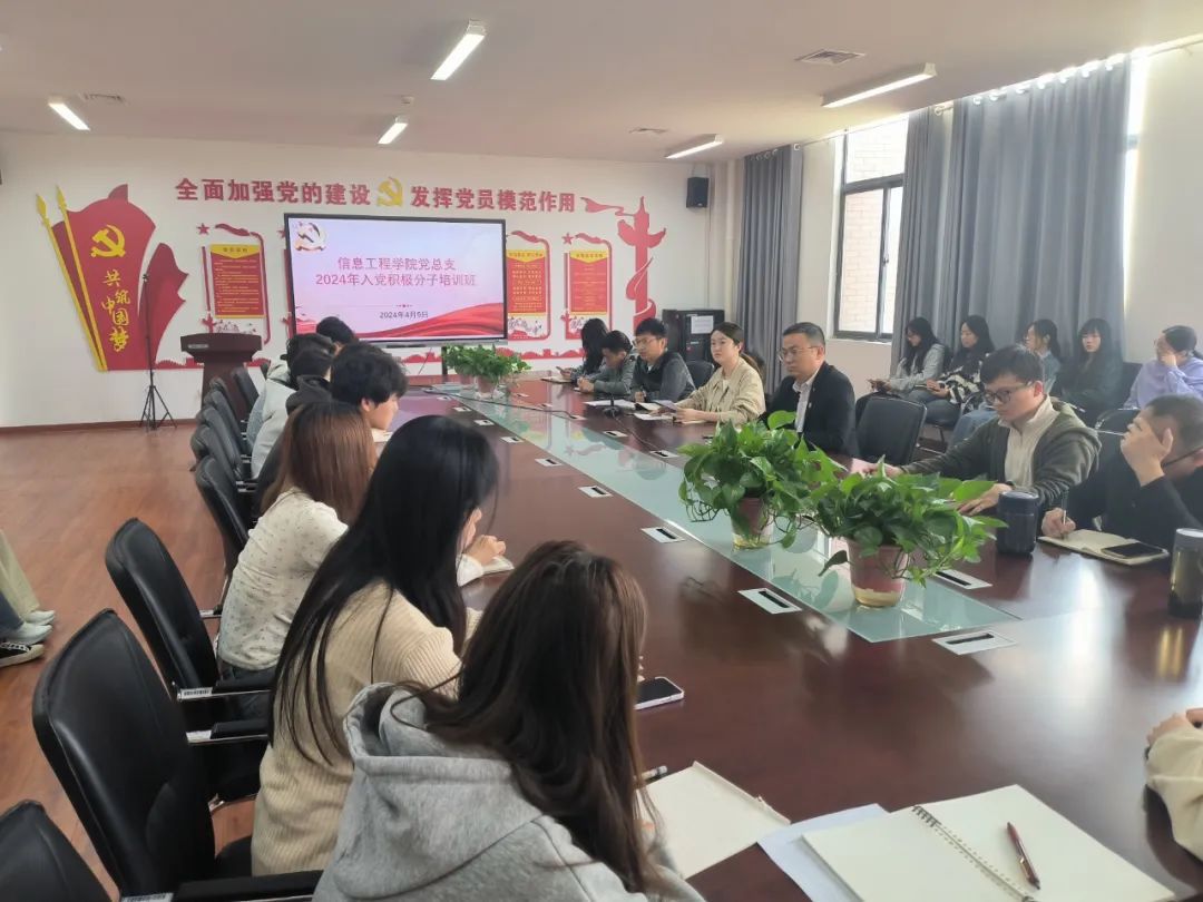 4月9日,信息工程学院在3-210会议室举行了2024年入党积极分子培训班开班仪式,信息工程学院党总支书记马选宝、团总支书记万维思、全体专职辅导员及全体入党积极分子参加开班仪式,会议由郁曙光主持。