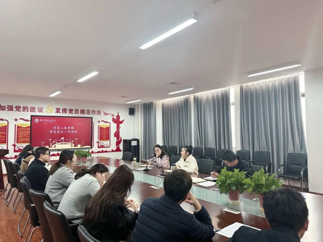 为进一步贯彻落实上级安全工作会议精神,11月7日下午,信息工程学院在210会议室召开安全专题工作会议,全体专兼职辅导员和班主任参加会议,会议由学院党总支副书记马侨丹主持。