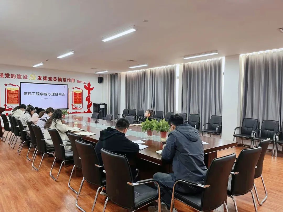 为进一步准确了解学生近期心理健康状态,给予学生及时有效的帮助与支持,提升学院心理危机预防和应对能力,信息工程学院于11月11日下午在3-210会议室召开心理研判会,学院党总支副书记马侨丹以及全体专兼职辅导员、班主任参加此次会议,会议由马侨丹主持。