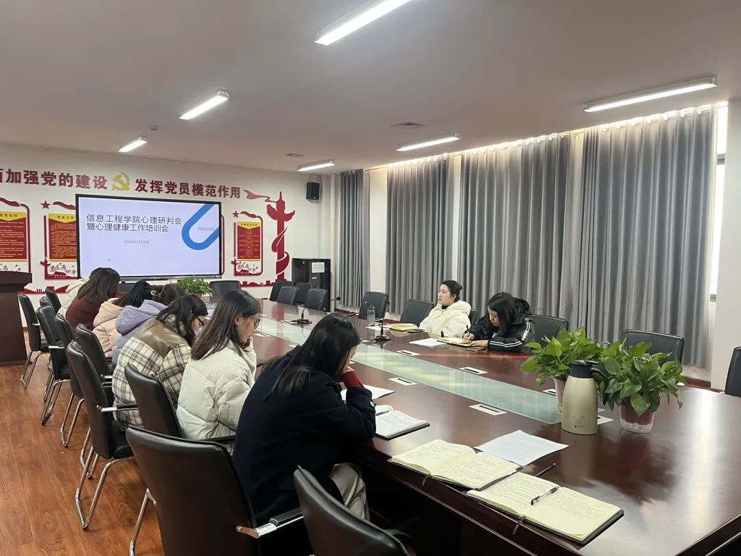 为进一步提升广大学生的心理健康意识,营造良好的心理育人氛围,信息工程学院于12月9日下午在3-210会议室召开心理研判会暨心理健康工作培训会。学院党总支副书记马侨丹以及全体专兼职辅导员、班主任参加此次会议,会议由夏丽红主持。