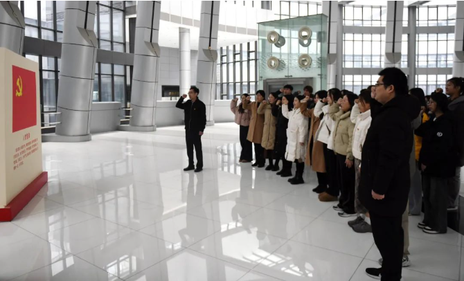 参观结束后,学院全体党员在光电所研发楼大厅整齐列队,由党总支书记杨硕领誓,面向党旗重温入党誓词,再次许下对党忠诚、为共产主义事业奋斗终身的坚定承诺。