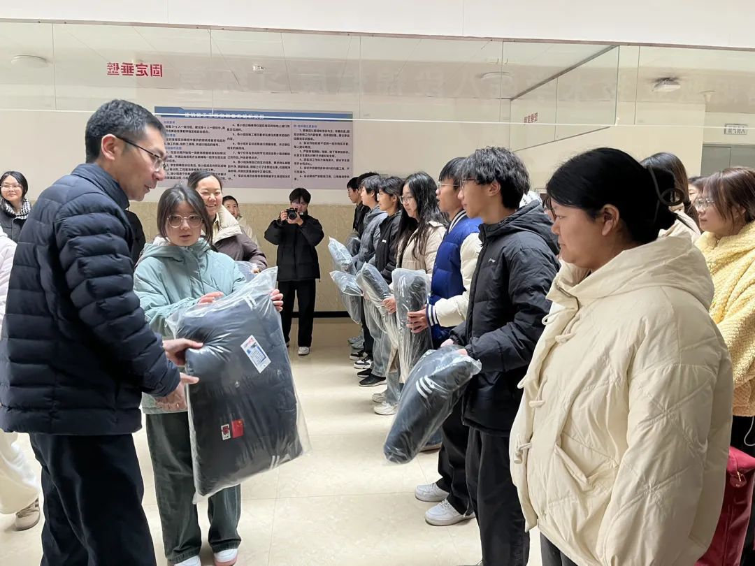 随后,邓卫国带领学院领导和辅导员为受助学生发放棉被、棉衣和围巾手套水杯三件套等御寒物资,将学校的温暖与关怀送到每一位需要帮助的学生手中。