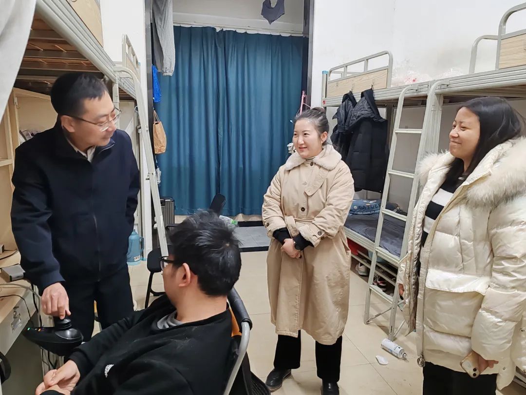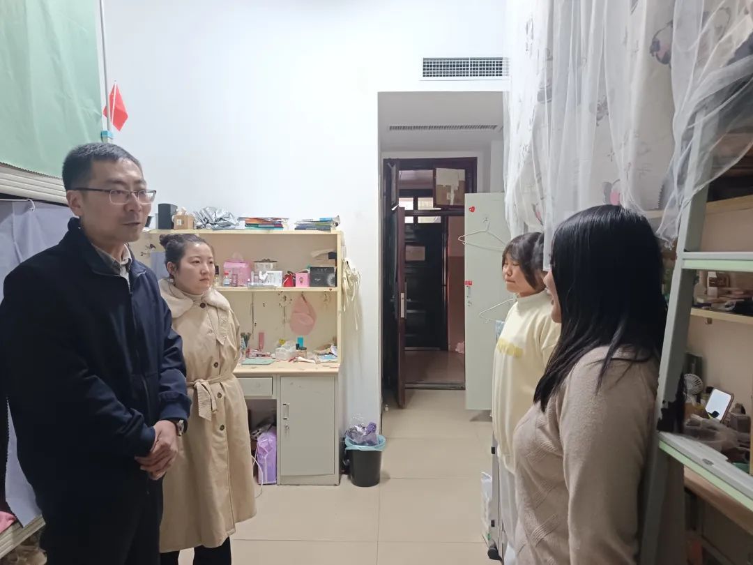 12月31日晚上,信息工程学院党总支书记杨硕带领全体学工队伍在跨年夜深入寝室看望学生,细致询问学生们期末考试的准备情况以及元旦假期学习、生活计划,传递节日的期望与祝福,并鼓励大家珍惜2024年取得的成绩,继续在新的一年里锐意进取,发愤图强,力争取得更加优异的成绩。