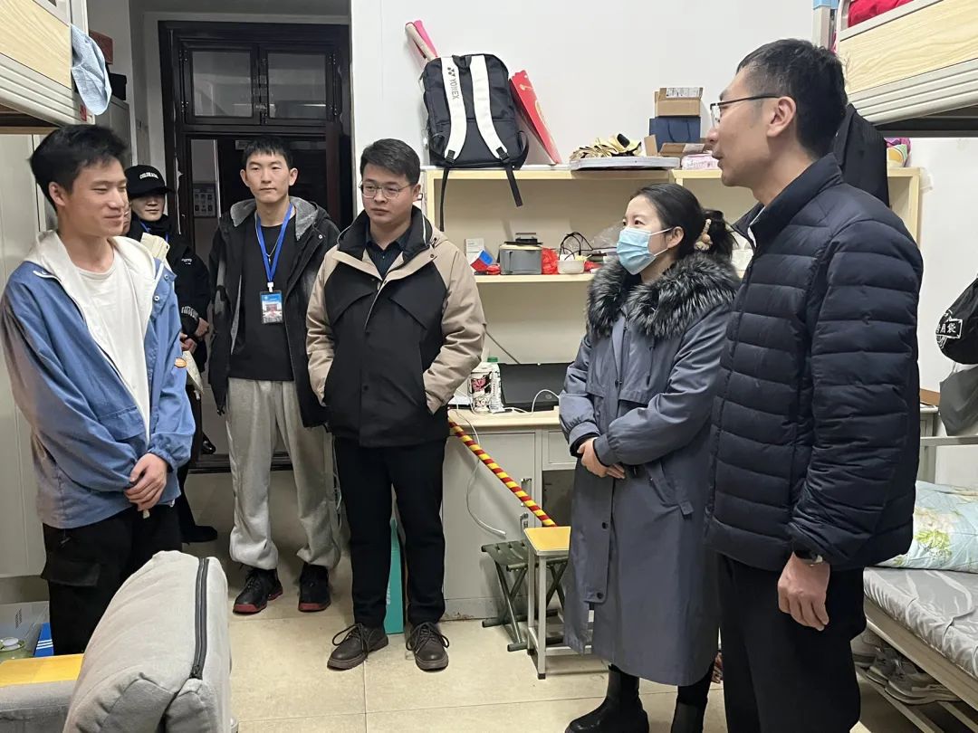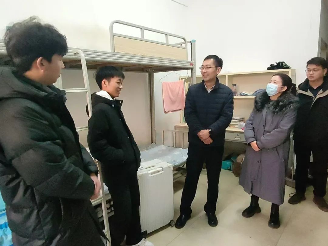 在检查过程中,杨硕深入学生宿舍,与学生进行亲切交谈。他细致询问学生们在寒假期间的安排和计划,并特别强调路途中的安全问题,提醒学生们要注意交通安全,与家人和学院保持联系。同时重点排查宿舍内的安全隐患,确保学生们在离校前能够关好窗户,切断电器设备和水源,保持宿舍的整洁和卫生。
