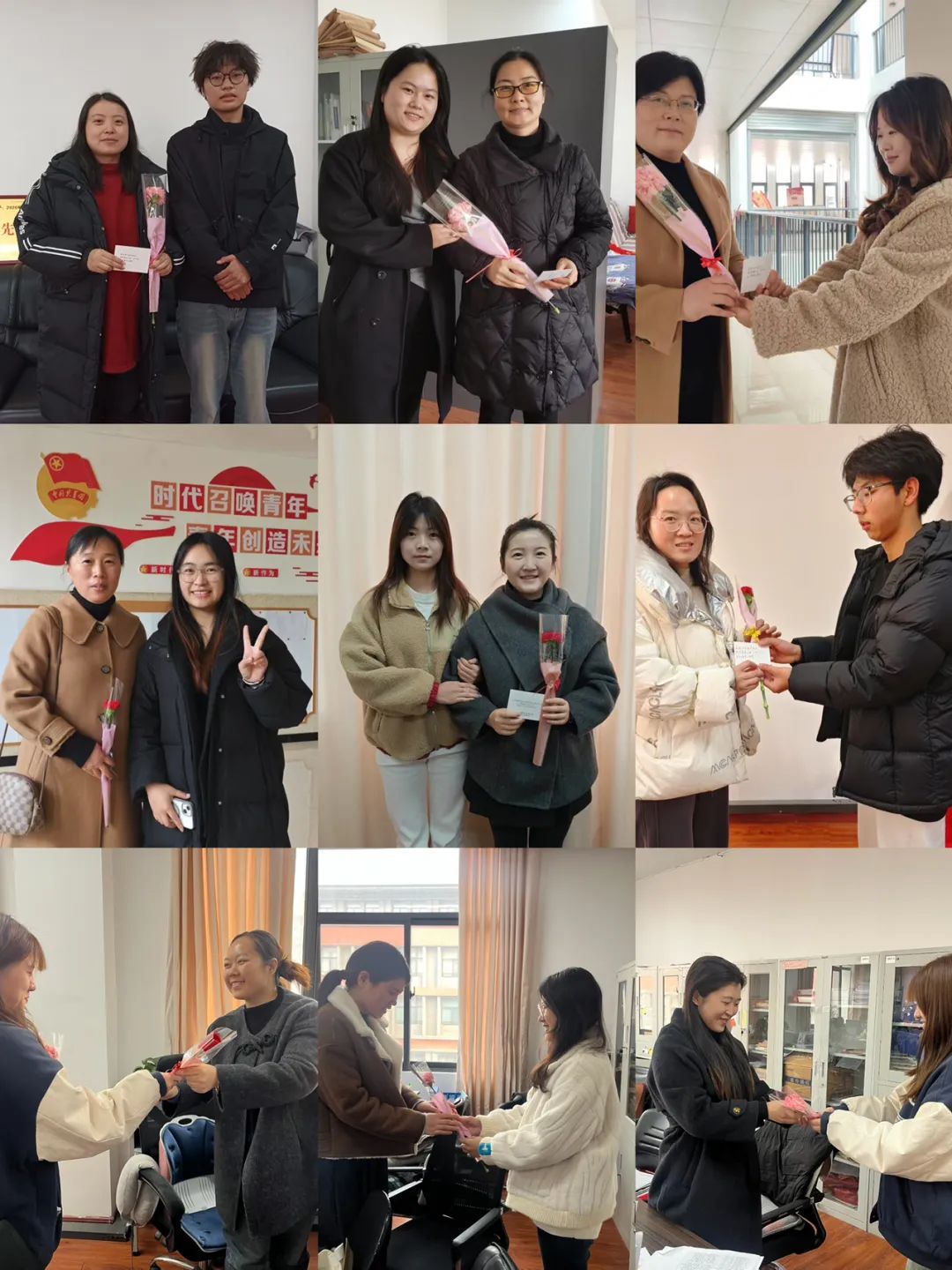 学生代表为女老师们送上鲜艳的康乃馨和深深的祝福,表达对她们辛勤付出的感激之情。每一朵花都承载着学生对老师的敬意与祝福,场面温馨感人。