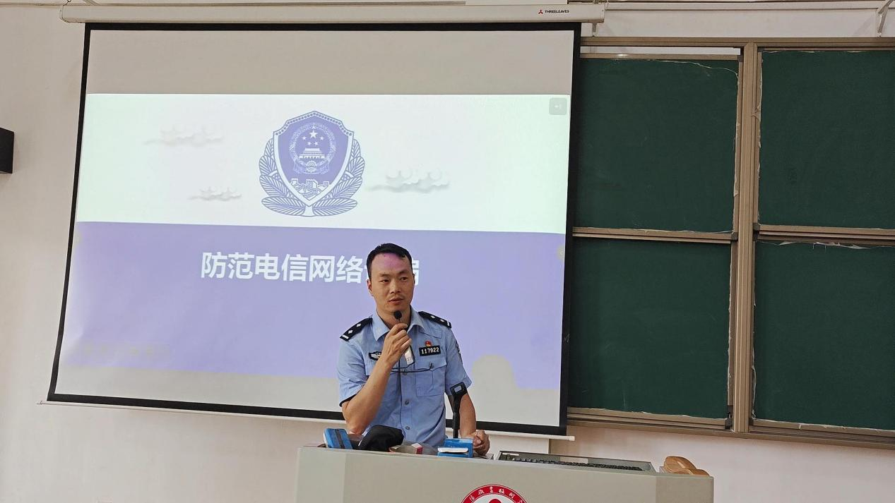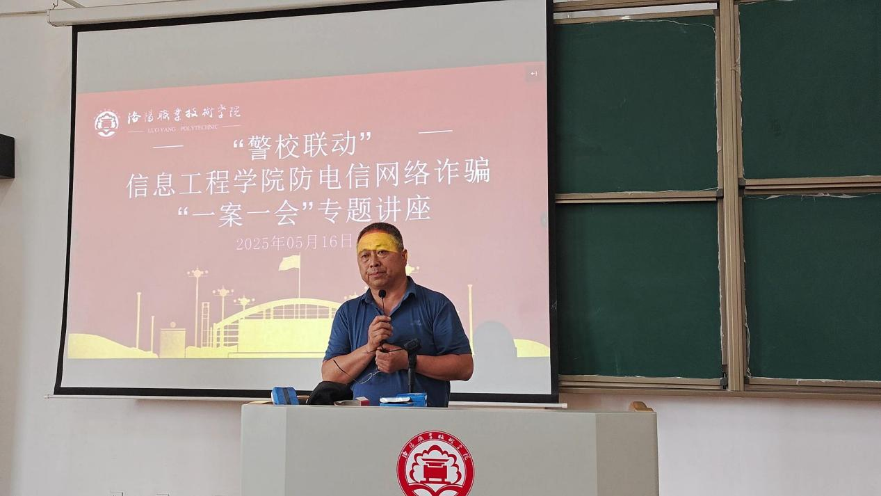5 月 16 日,洛阳伊滨区李村派出所联合洛阳职业技术学院后勤保卫处,在信息工程学院举办防电信网络诈骗 “一案一会” 专题讲座,学院团总支书记万维思主持。