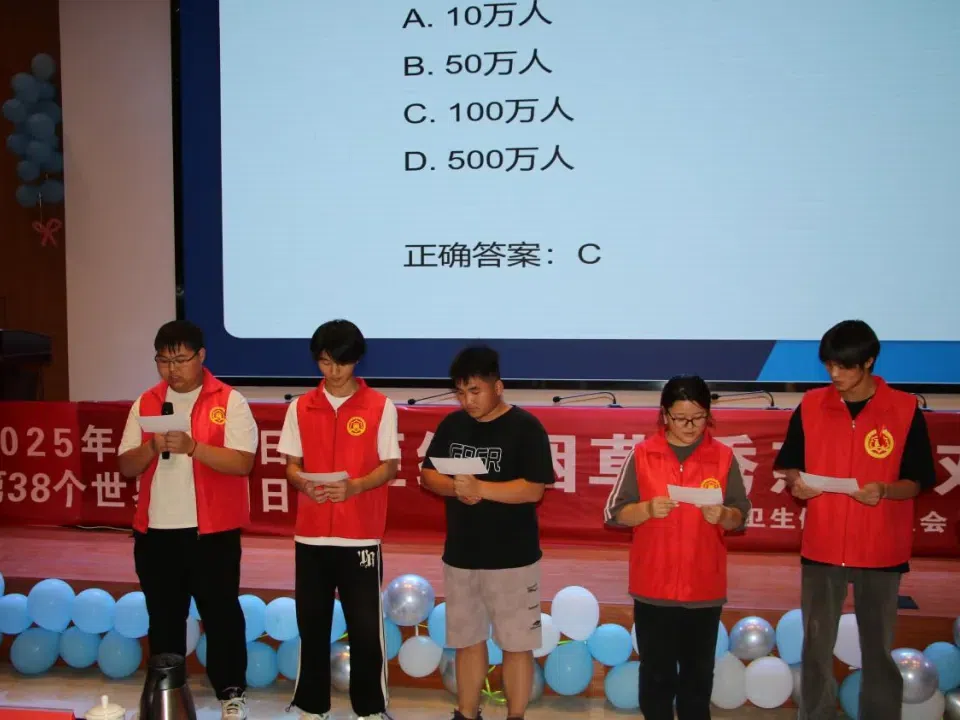 卫生健康委工作人员组织烟草知识有奖竞答,题目围绕危害与法规,同学们踊跃参与,在互动中加深控烟知识记忆。