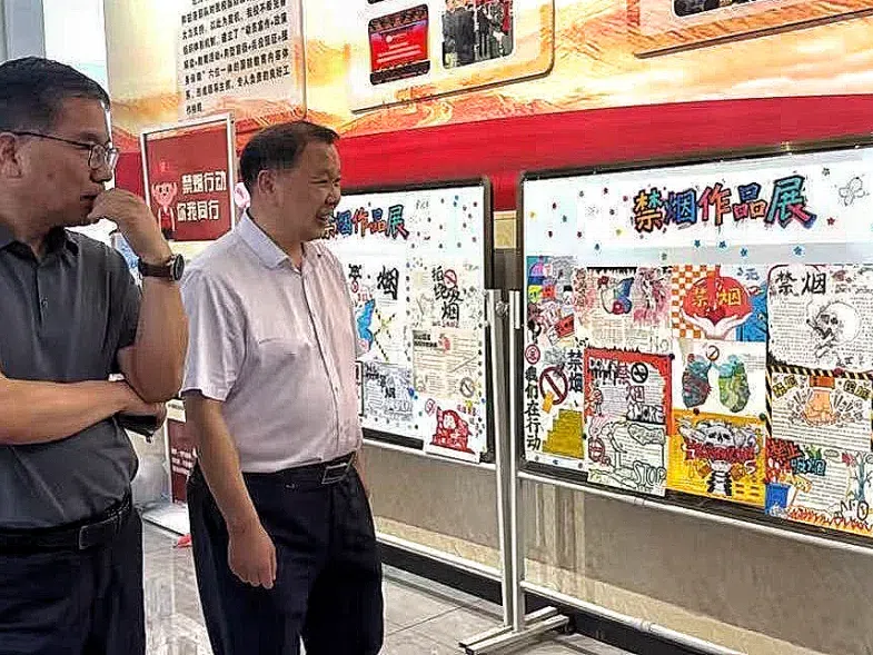 会后,与会领导参观禁烟主题的作品展,一幅幅由学生们精心创作的海报、漫画等作品,从不同角度展现烟草危害,彰显同学们对无烟生活的热切期盼。