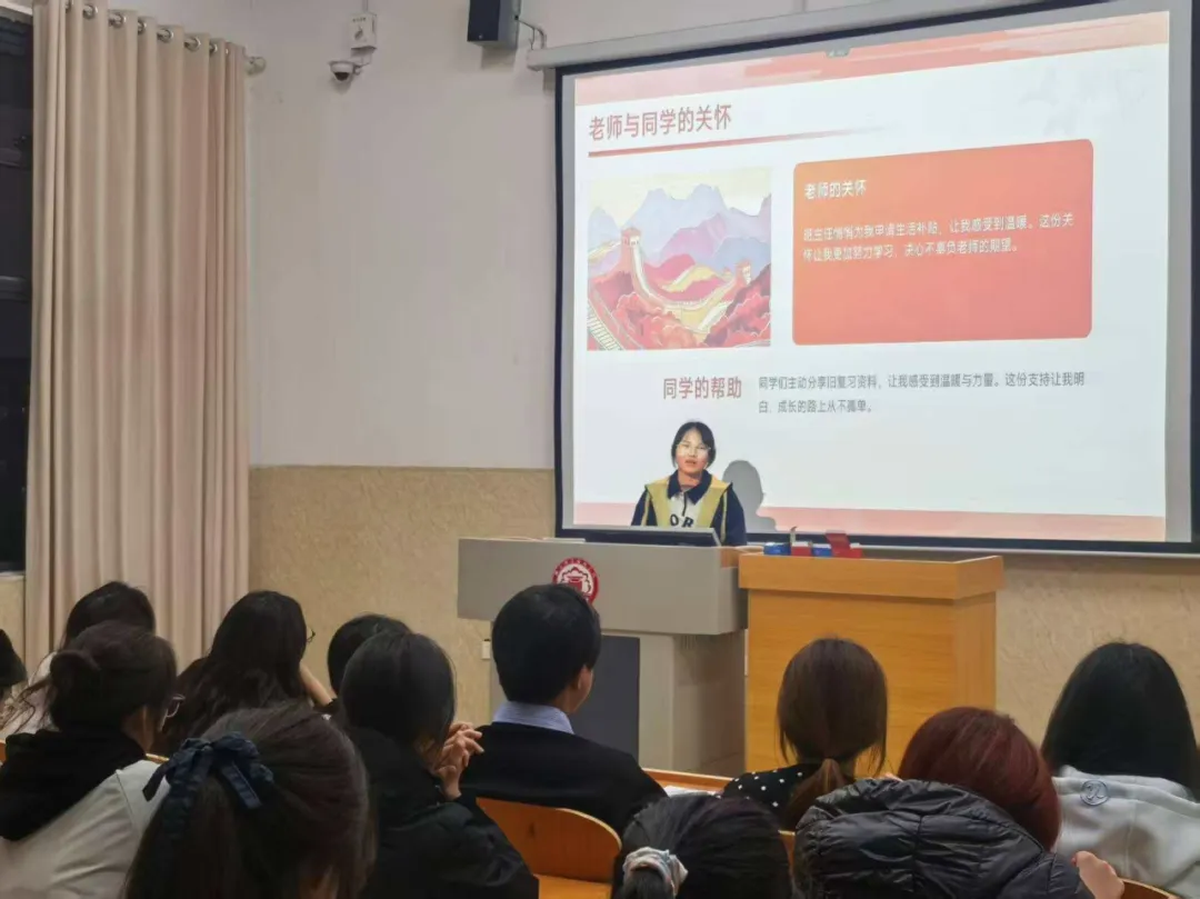 演讲同学用自己的亲身经历以及真挚的情感讲述着自己对国家资助的感恩,同时向大家科普资助政策有哪些,同时用“政策解读+案例分析“的方式,详细讲解申请条件、流程以及注意事项。他们的演讲展现当代大学自强不息、之恩图报的精神风貌,激发学生的感恩意识与奋斗热情,引导学生将资助关怀转化为成长动力。