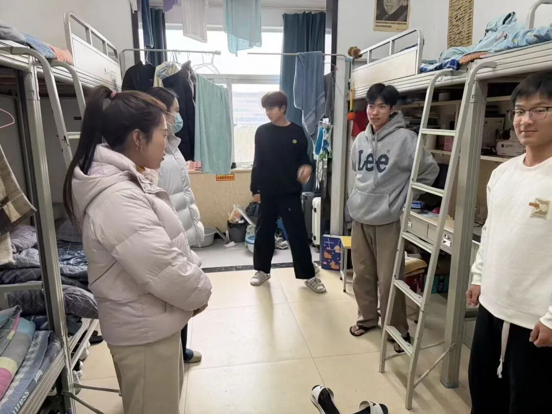 在宿舍走访过程中,老师们详细询问同学们返校后的适应情况、饮食起居及学习规划,叮嘱同学们新学期要照顾好自己,合理安排作息、规律饮食,主动适应校园生活节奏。同时,结合宿舍安全与生活细节,提醒大家增强安全防范意识,养成良好生活习惯。