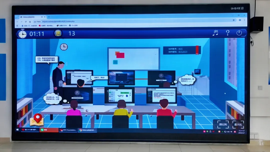 活动伊始,暖心暖场环节精彩纷呈。一曲网络安全版《李白》唱响全场瞬间活跃现场氛围,趣味网络安全“找茬”小游戏寓学于乐,有效增进了老师们之间的交流情谊。