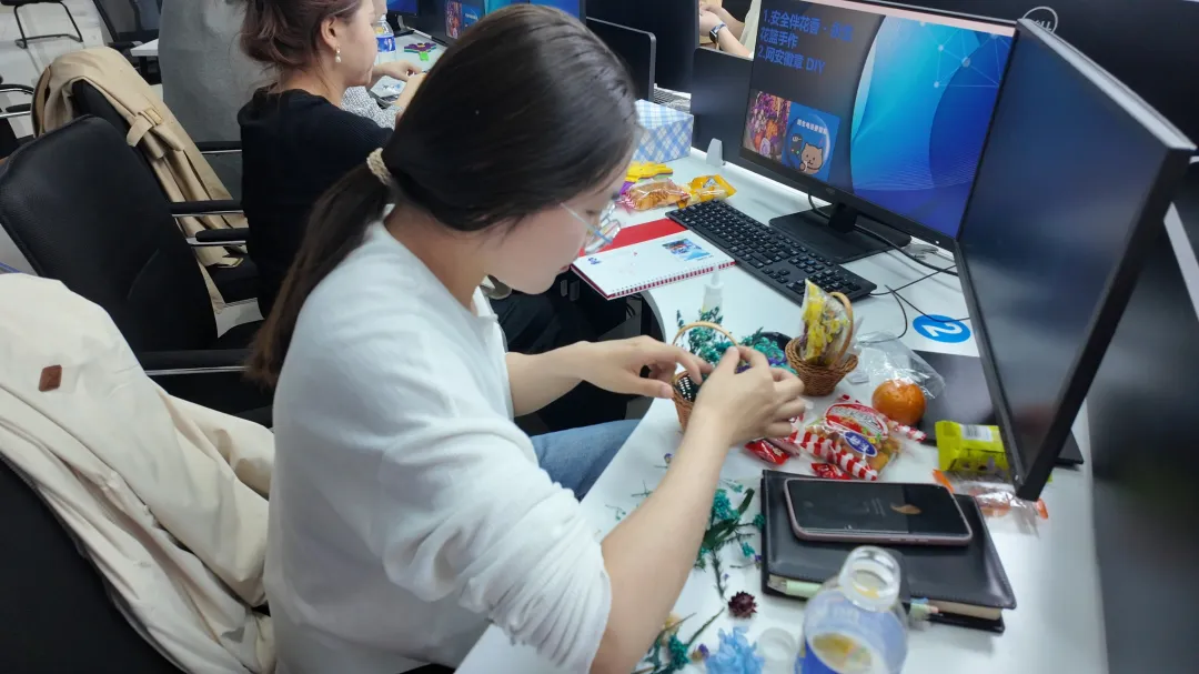 活动最后,辅导员们参与了安全伴花香·永生花篮手作、网安徽章DIY放松环节,在动手创作中舒缓工作压力,同时将网络安全理念融入创意制作,让网络安全意识入脑入心。
